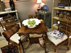 Bamboo chair with linen seat cushion. $50 each