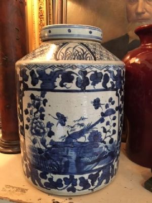 Lovely blue & white ginger jar. Measures 12"X16". Will ship this item. Call store to purchase. (205) 540-1868