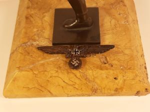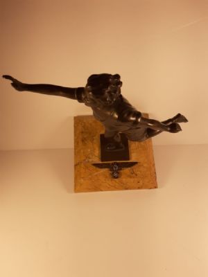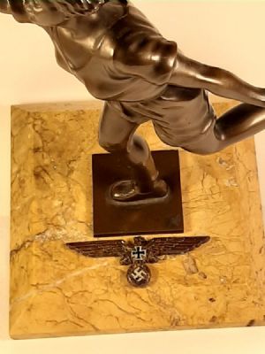 Stunning bronze figurine of a lady runner most likely from the 1936 Olympics. Beautiful marble base with the Eagle Swastika insignia at her feet. Based on the clothing depicted in this bronze it would fit into the 1930’s time frame of the Berlin Olympic games. The bronze stands 8 1/2” tall and the base is 4 ¾” square. The patina is exquisite and the figurine is absolutely perfect. Great piece for the historically minded military collector or anyone of WWII artifacts collecting. For payment I will accept personal checks, money orders, certified check or, cashiers’ check. Personal checks require 8 business days to clear the bank, all other forms of payment receive same day as received shipment. Thanks for looking and if you have any questions give us a call @ 931-303-6739 or email us at windowshop49@yahoo.com